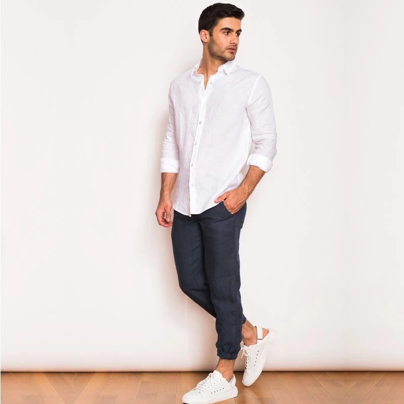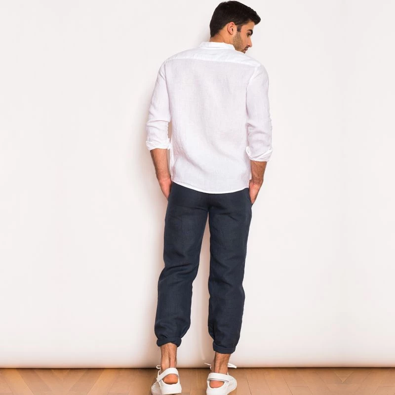 Classic Fit Linen Pants In Blue Marine By Haris Cotton