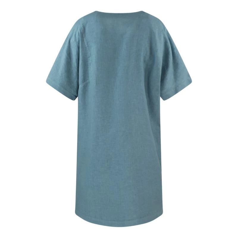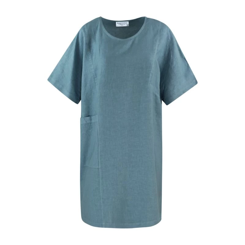 High-Low Linen Short Sleeved Dress - Harbor Grey By Haris Cotton