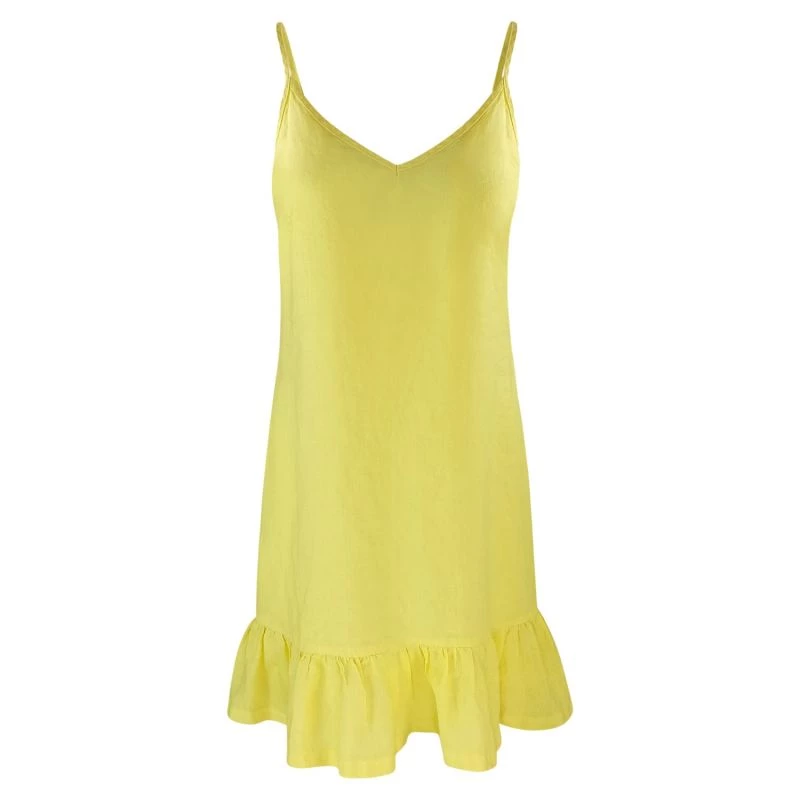 Knee Length Linen Dress With Ruffles – Yellow By Haris Cotton