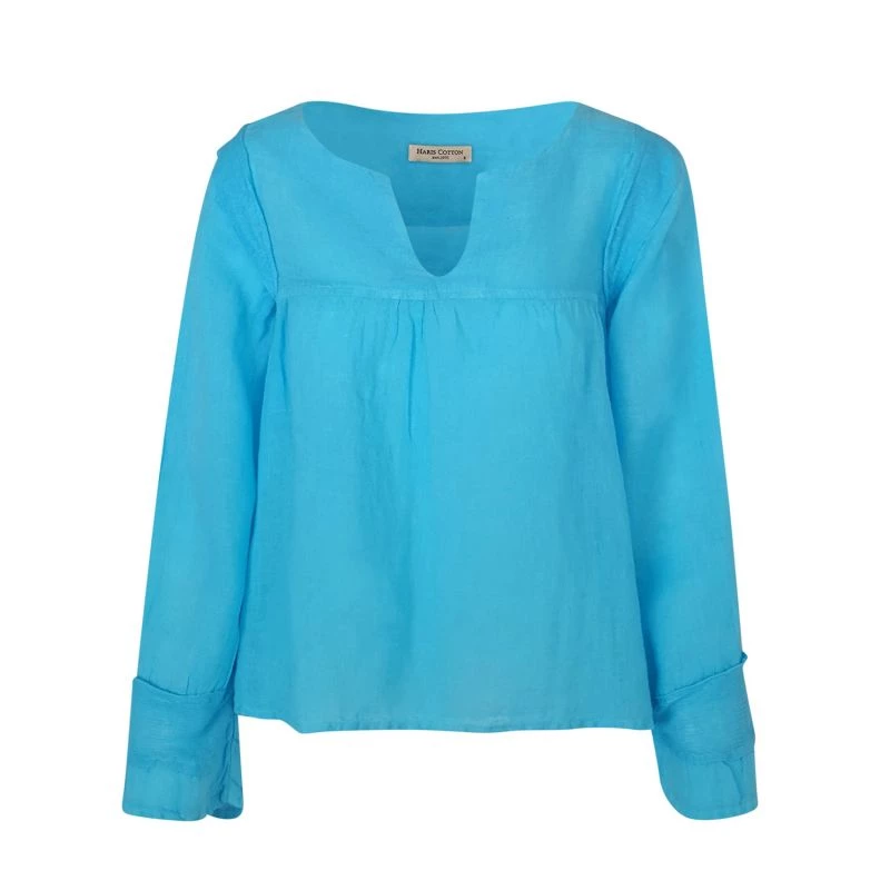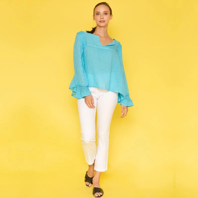 Linen Gauze Blouse With Elastic Linen Trims- Tropical Sea By Haris Cotton