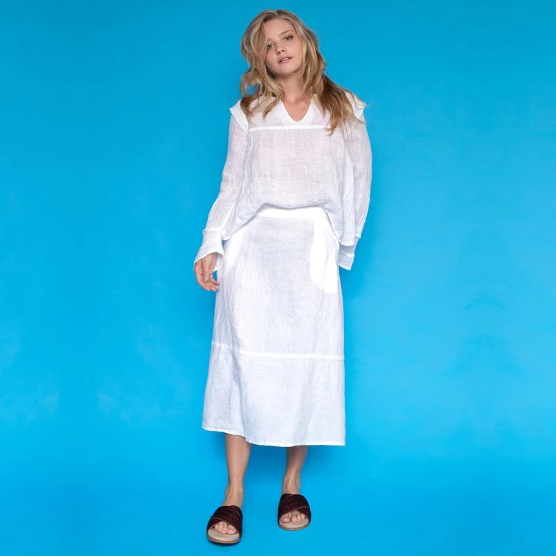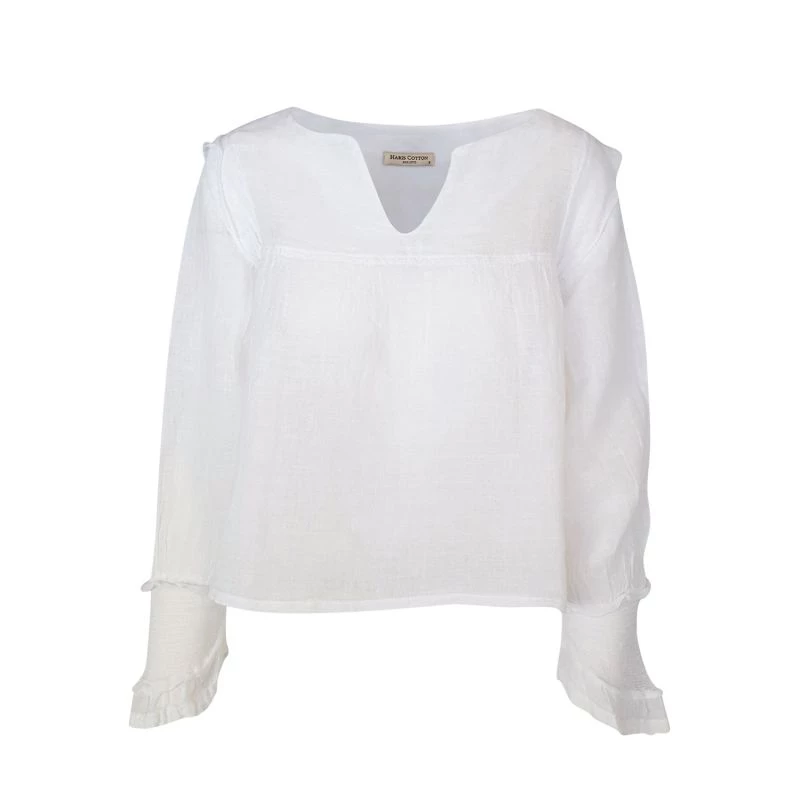 Linen Gauze Blouse With Elastic Linen Trims- White By Haris Cotton