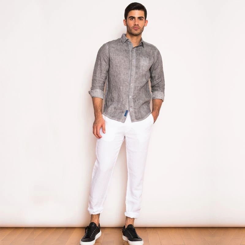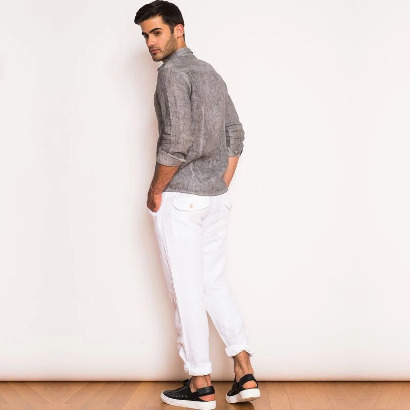 Linen Pants With Back Cargo Pockets – White By Haris Cotton