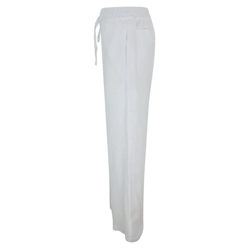 Linen Pants With Rib And Back Pockets – White By Haris Cotton