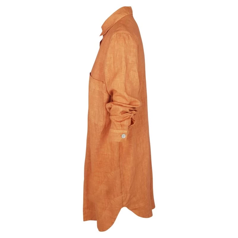 Long Sleeved Oversized Linen Shirt Dress-Tan By Haris Cotton