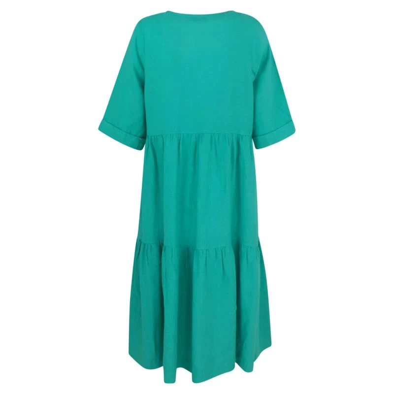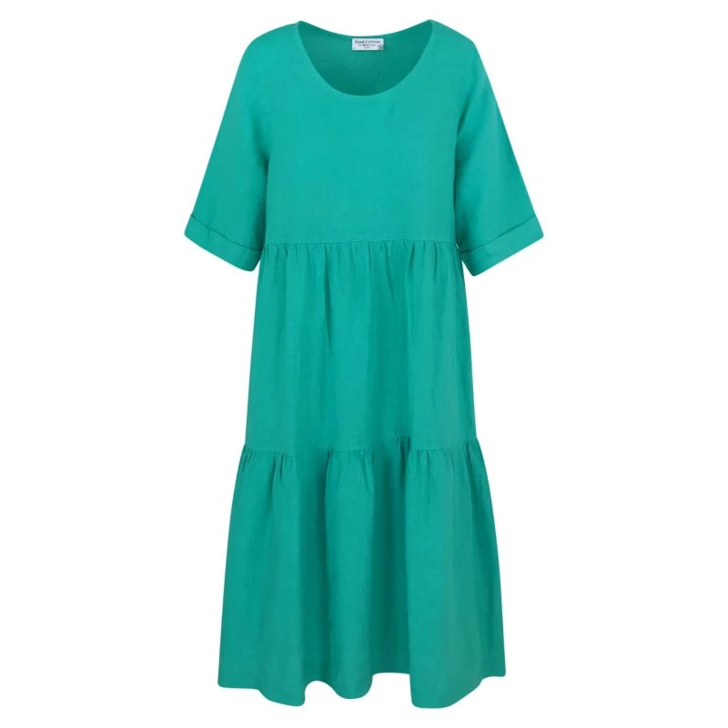 Loose Fit Midi Linen Dress With Ruffles – Island Green By Haris Cotton