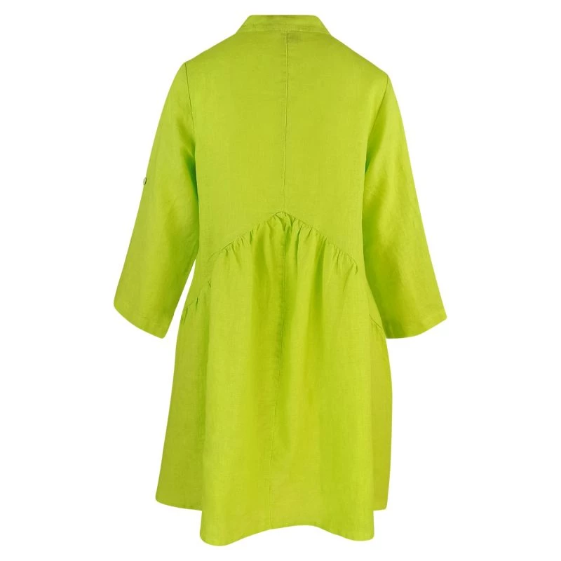 Mini Length Linen Dress With Buttons - Spring Green By Haris Cotton