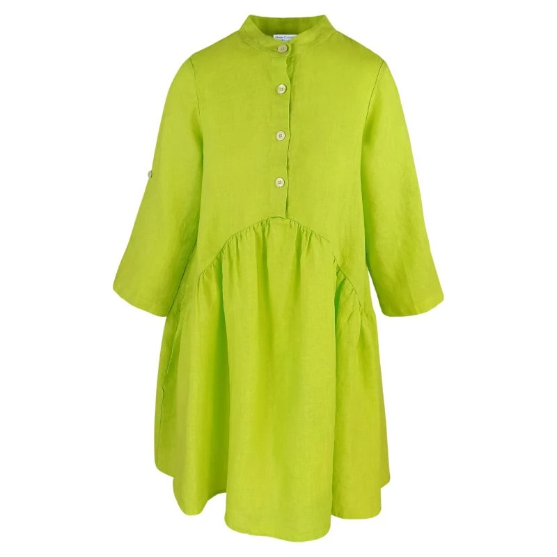 Mini Length Linen Dress With Buttons – Spring Green By Haris Cotton