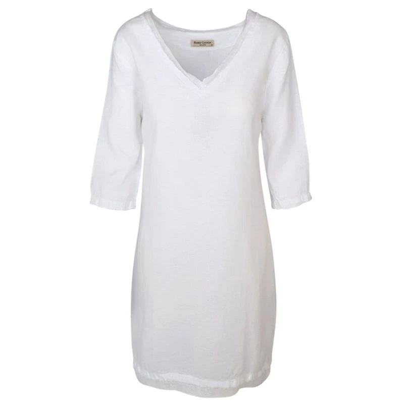 Mini Linen Dress With Elastic Linen Trims - White By Haris Cotton