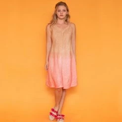 Melpomene Tie Dye Flared Dress Coral & Beige By Haris Cotton