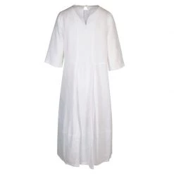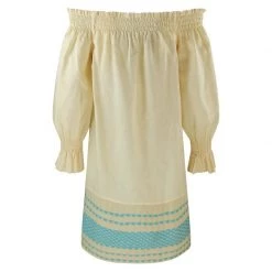 Mini Linen Off Shoulders Dress With Embroidered Cotton Panels – Spring Green By Haris Cotton