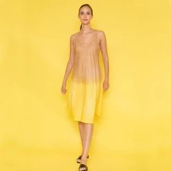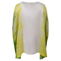 Tie-Dye Linen Gauze Loose Fit Blouse With Embroidered Panel – Yellow/Spring Green By Haris Cotton