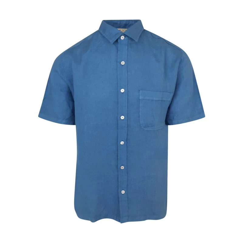 Short Sleeved Front Pocket Linen Shirt - Port Blue By Haris Cotton