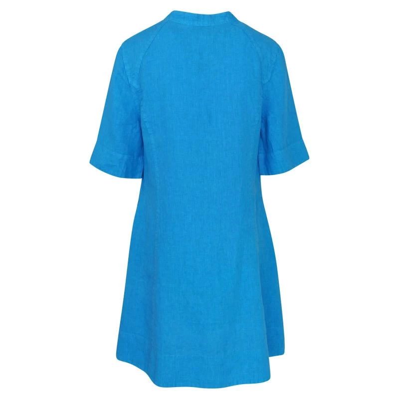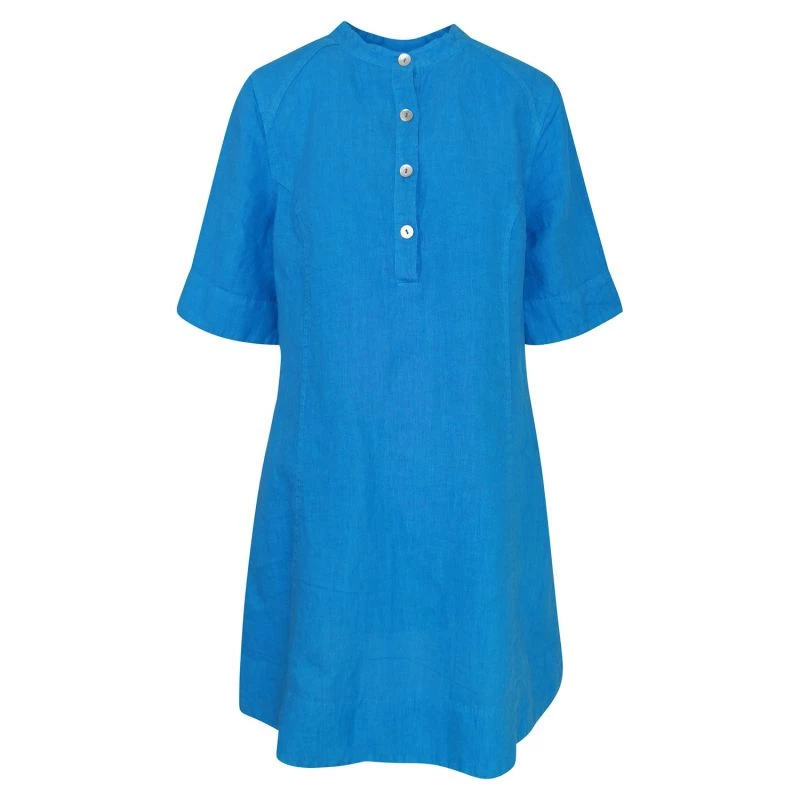 Short Sleeved Linen Mini Dress With Front Buttons - Santorini Blue By Haris Cotton