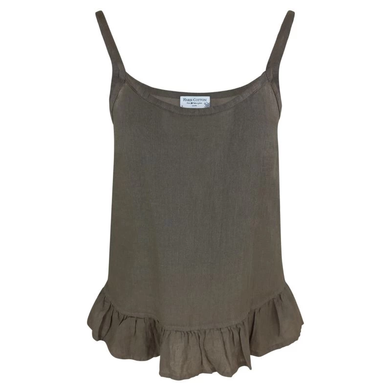 Strapped Linen Top With Ruffles – Taupe By Haris Cotton