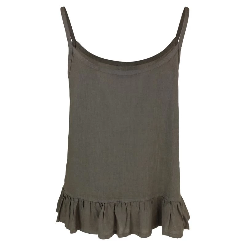 Strapped Linen Top With Ruffles - Taupe By Haris Cotton