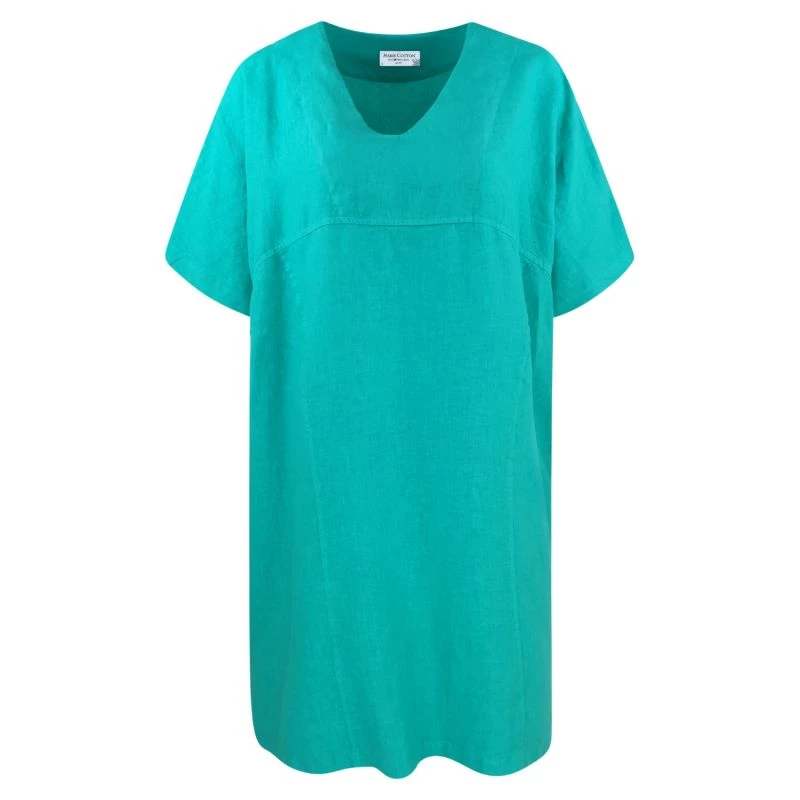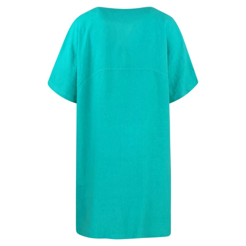 "V" Neck Linen Loose Fit Dress - Island Green By Haris Cotton